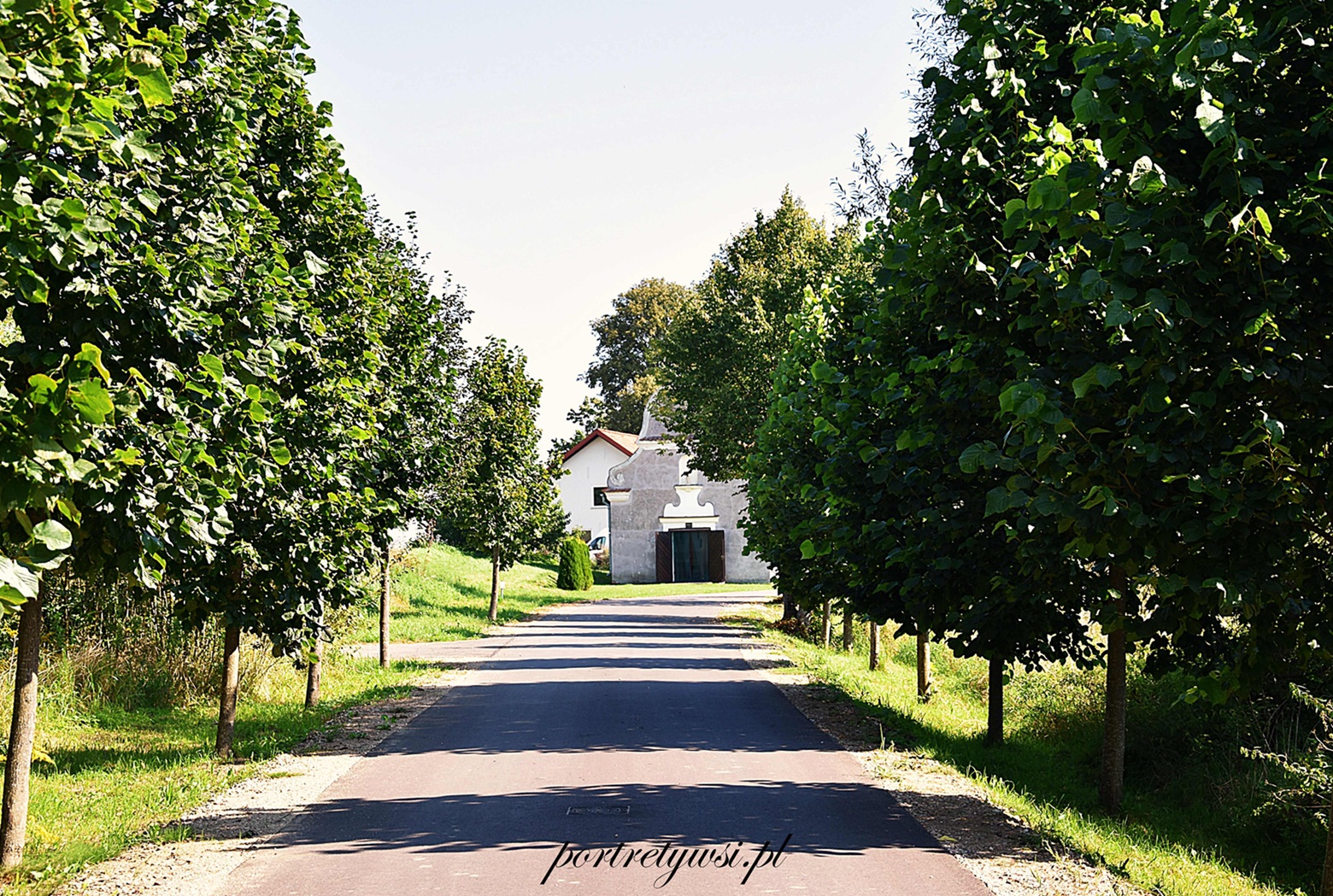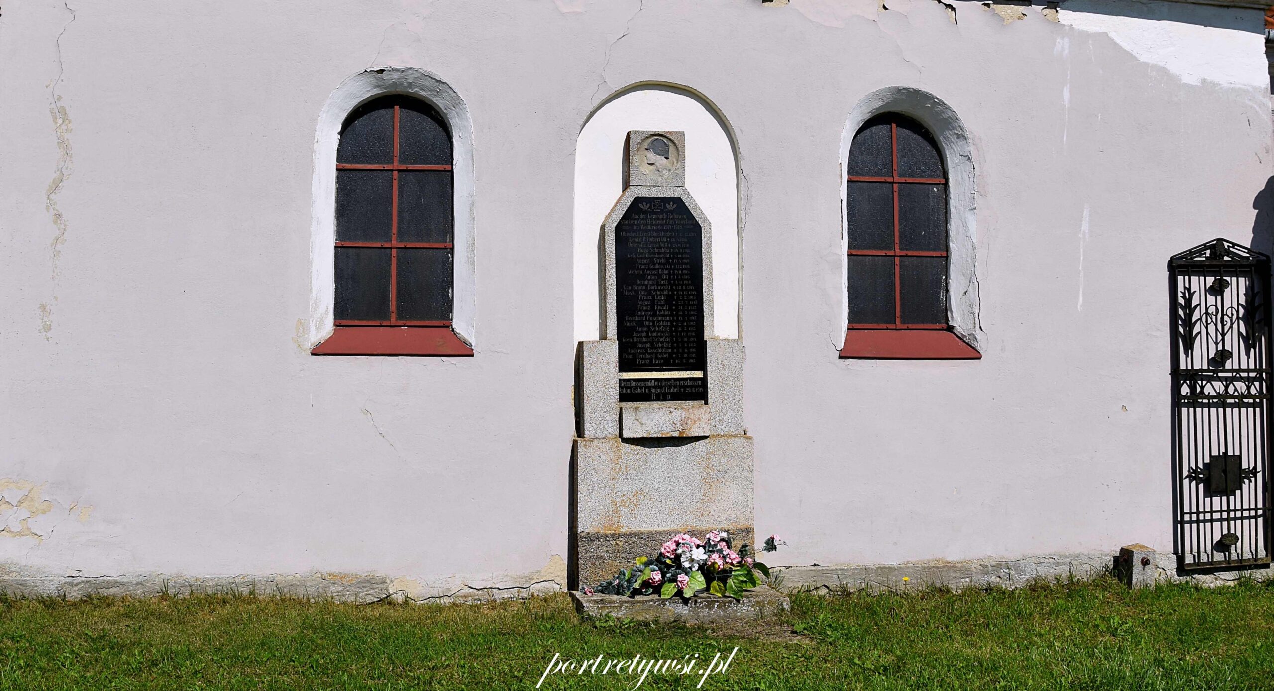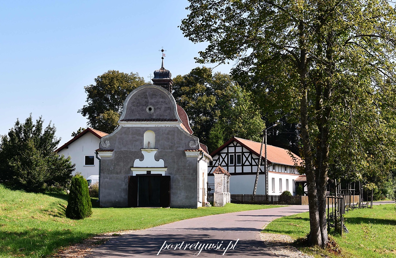W 1733 roku z fundacji rodziny Markuszewskich wybudowano tu barokową kaplicę, która tworzy prezbiterium nowej kaplicy wystawionej w 1929 roku. W ołtarzu znajduje się zabytkowa pieta z około 1671 roku będąca kopią innej gotyckiej rzeźby. Na zewnętrznej ścianie kaplicy umieszczono tablicę z nazwiskami mieszkańców poległych w latach 1914–1918, pochodzącą z pomnika, który przed 1945 rokiem stał w pobliżu świątyni.