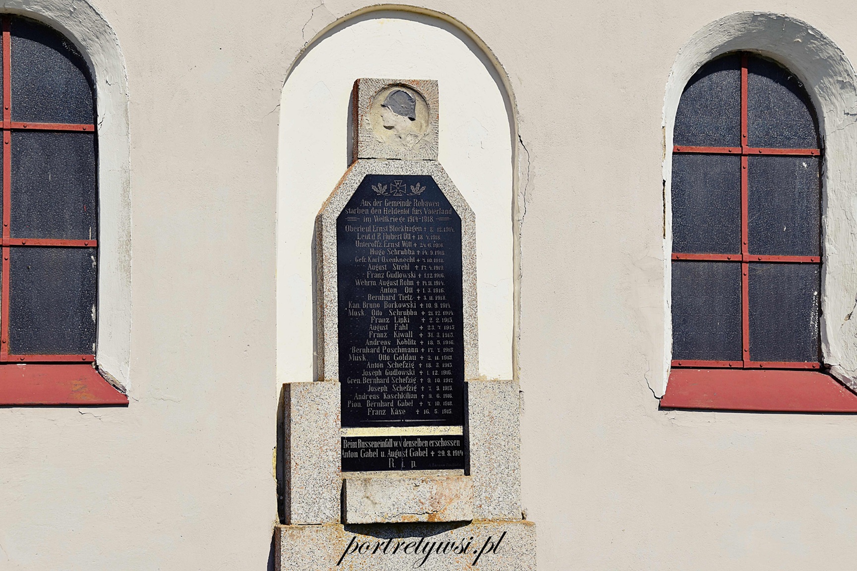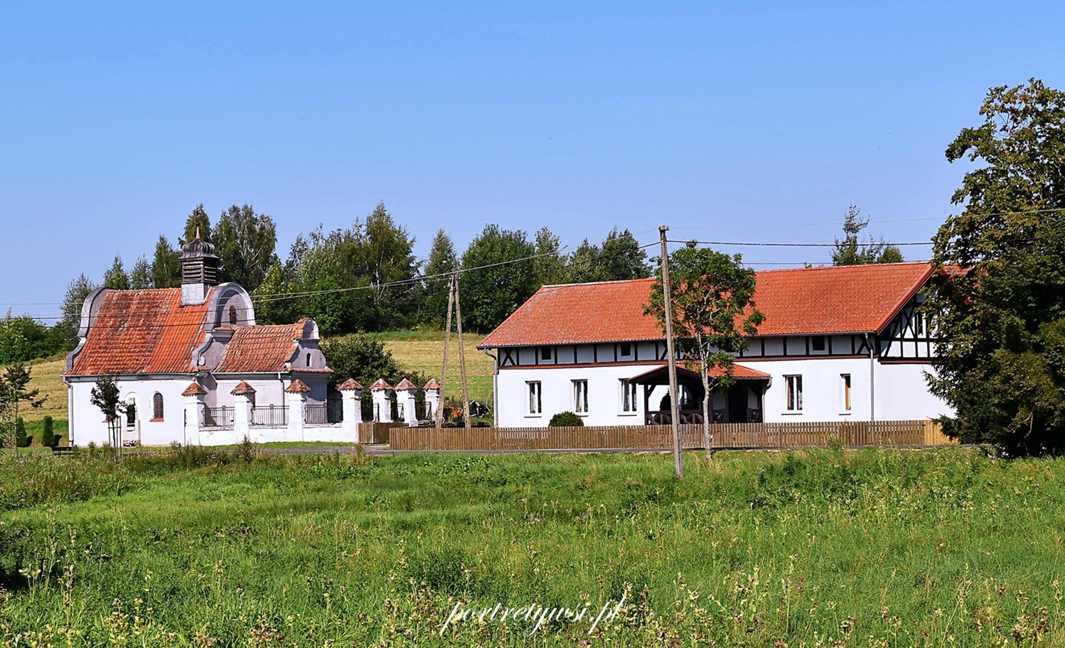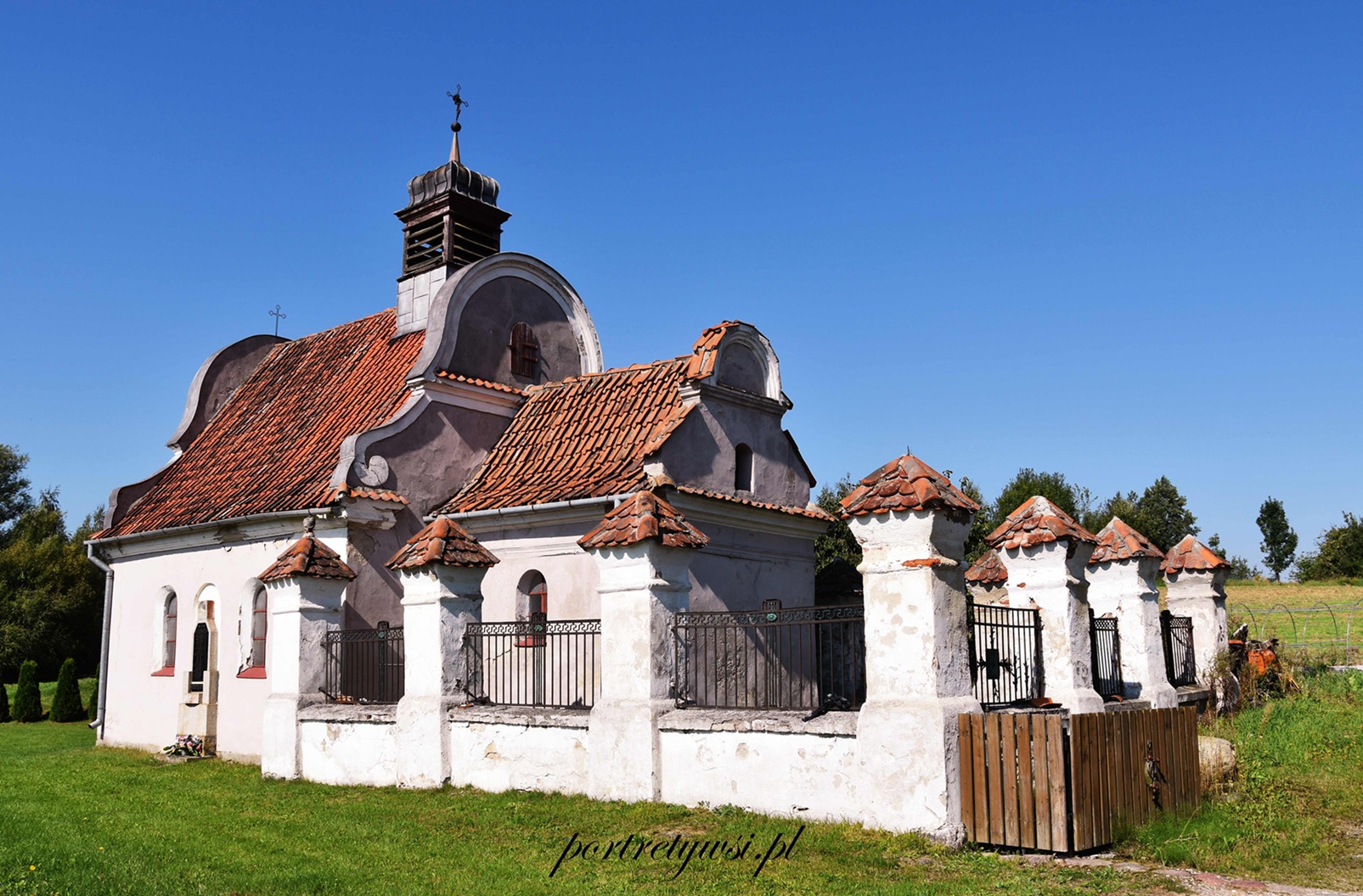 W 1733 roku z fundacji rodziny Markuszewskich wybudowano tu barokową kaplicę, która tworzy prezbiterium nowej kaplicy wystawionej w 1929 roku. W ołtarzu znajduje się zabytkowa pieta z około 1671 roku będąca kopią innej gotyckiej rzeźby. Na zewnętrznej ścianie kaplicy umieszczono tablicę z nazwiskami mieszkańców poległych w latach 1914–1918, pochodzącą z pomnika, który przed 1945 rokiem stał w pobliżu świątyni.