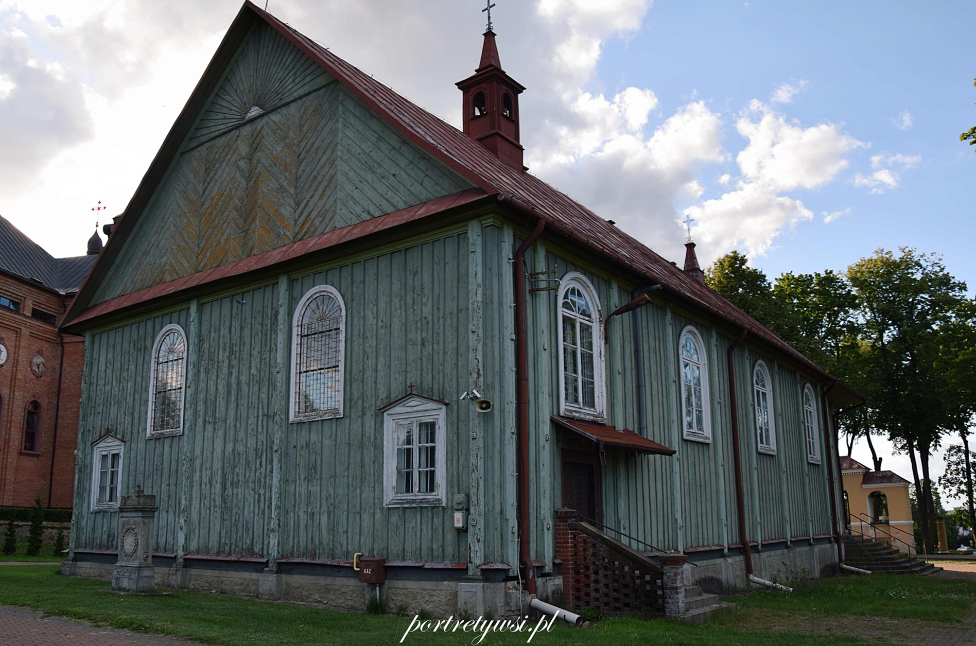 Najważniejszym zabytkiem miejscowości jest drewniany kościół wybudowany w 1816 roku z inicjatywy hrabiego Stanisława Ossolińskiego. Świątynia była wielokrotnie przerabiana i odnawiana. Posiada trzy klasycystyczne ołtarze z początków XIX wieku. W bezpośrednim sąsiedztwie kościoła wznosi się murowana dzwonnica-brama (ok. 1820 r.) z trzema dzwonami. Teren przykościelny jest ogrodzony murem i podzielony na dwie części: południową i północną. W części południowej znajdują się: